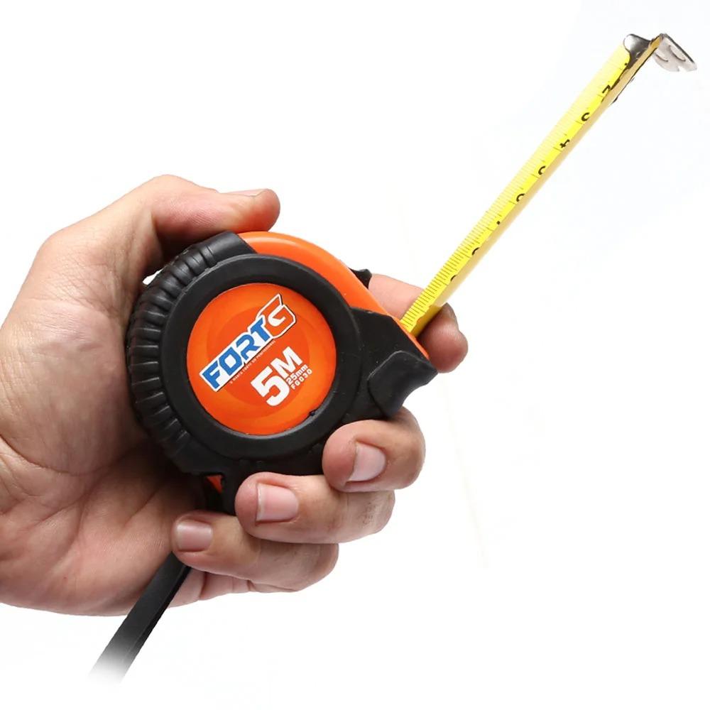 Trena Profissional FORTG PRO FG030 de 5 metros possui fita fabricada em aço com largura de 25mm, o que oferece maior resistência e durabilidade. Conta com corpo emborrachado e graduação métrica e polegadas. Retorno automático da fita e trava para facilitar a utilização. Indicada para uso em medições.